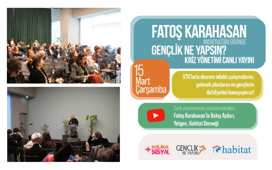 2021 yılında gerçekleştirilen Clubhouse Buluşmaları’ndan ilham alarak, Fatoş Karahasan moderatörlüğünde gerçekleştirdiğimiz “Gençlik Ne Yapsın?” etkinlikleri kapsamında, 15 Mart 2023 günü, bu sefer deprem alanında çalışan STK’ları Habitat Derneği’nin ev sahipliğinde bir araya getirdik.